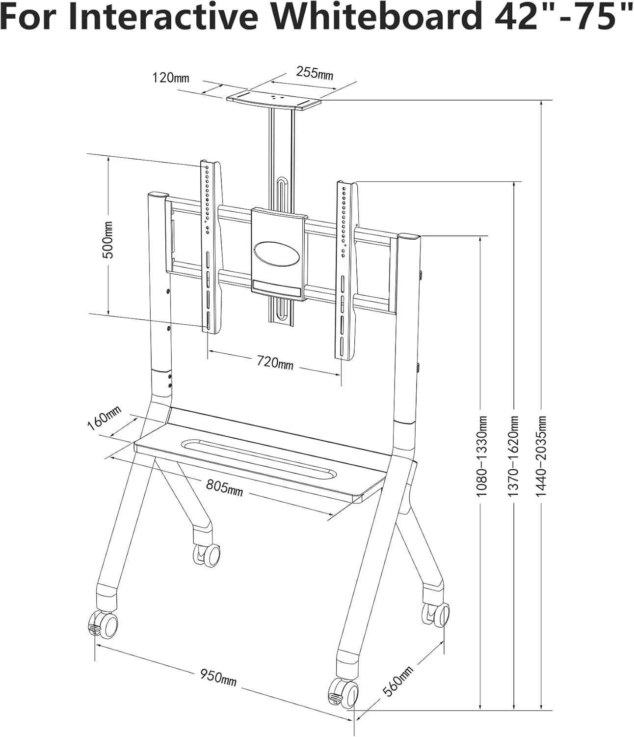 At the core of the NORQIN stand’s value proposition is its deliberate engineering for broad compatibility. It is explicitly designed to accommodate a substantial range of interactive whiteboards, televisions, and displays from 42 inches to a sprawling 75 inches. This range covers the vast majority of commercially available interactive panels, from medium-sized collaboration tools for huddle rooms to large-format displays for main conference rooms or lecture halls.